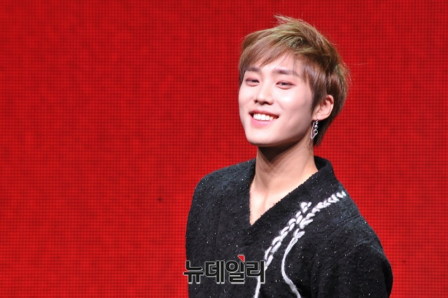 아이돌그룹 ‘더보이즈(THE BOYS)’ 멤버 제이콥이 10일 오후 서울 광진구 예스24 라이브홀에서 열린 정규 1집 ‘리빌(REVEAL)’ 쇼케이스에서 포토타임을 갖고 있다.