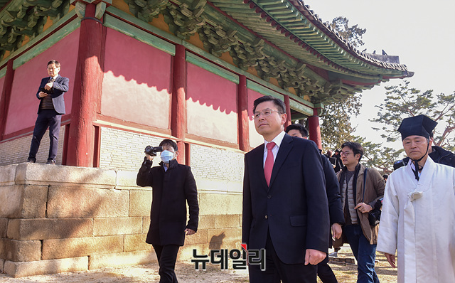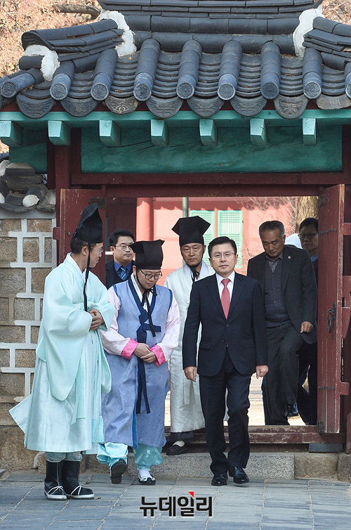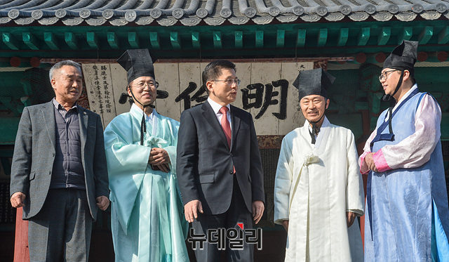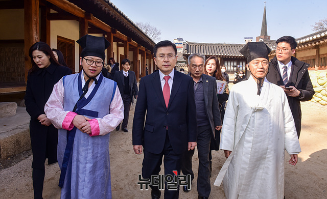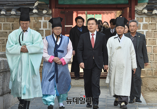 제21대 총선에서 '종로' 지역구 출마선언을 한 황교안 자유한국당 대표가 10일 오후 서울 종로구 성균관을 찾아 경내를 둘러보고 있다.