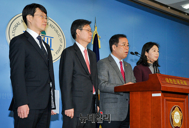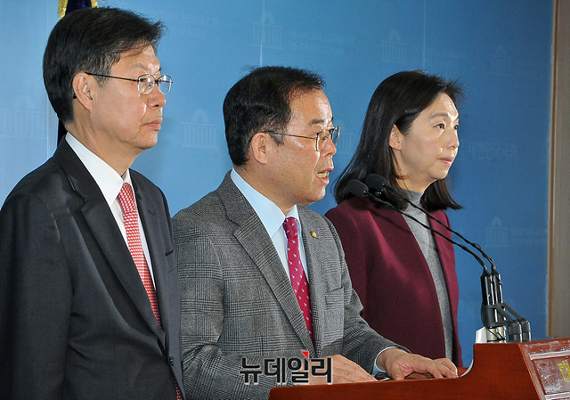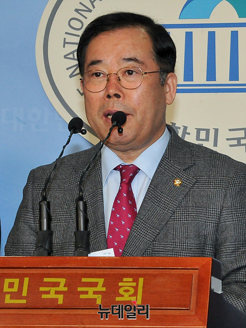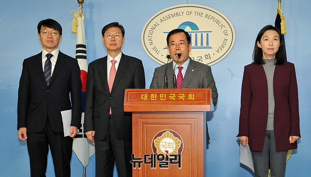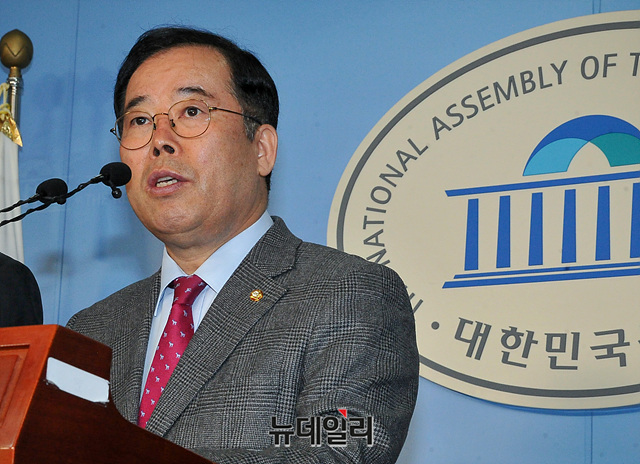 박성중 자유한국당 의원이 11일 오전 국회 정론관에서 박원순 서울시장 고발 관련 기자회견을 갖고 있다.