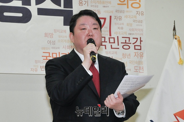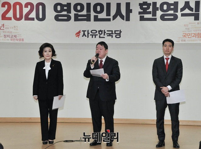자유한국당 인재영입 10호인 박대성 페이스북코리아 부사장이 11일 오전 국회 의원회관에서 열린 '자유한국당 2020 영입인사 환영식'에서 인사말을 하고 있다.