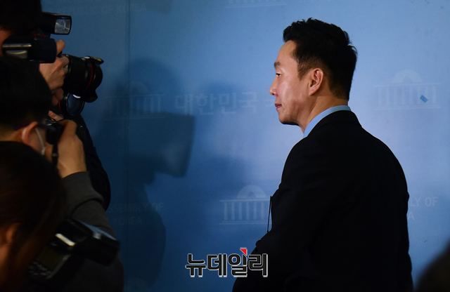 '미투'(metoo)논란으로 더불어민주당 예비후보자 부적격 판정을 받은 정봉주 전 의원이 11일 오후 국회 정론관에서 입장을 밝히는 기자회견 미치고 떠나고 있다. 정 전 의원은 이날 "원통하고 억울하지만 민주당 결정을 수용하겠다" 며 부적격 판정을 수용했다.