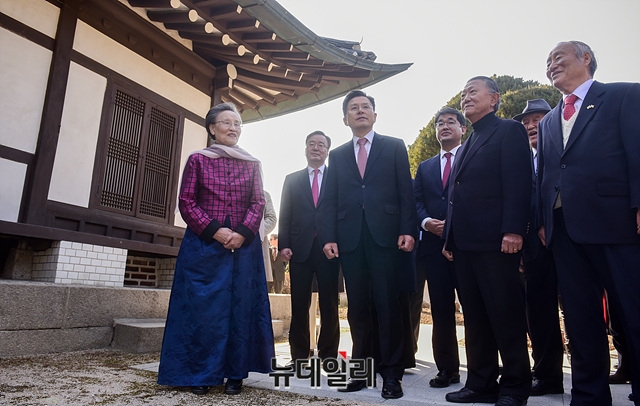 황교안 자유한국당 대표가 11일 오후 서울 종로구 우남 이승만 전 대통령 사저인 이화장을 방문해 살펴보고 있다.