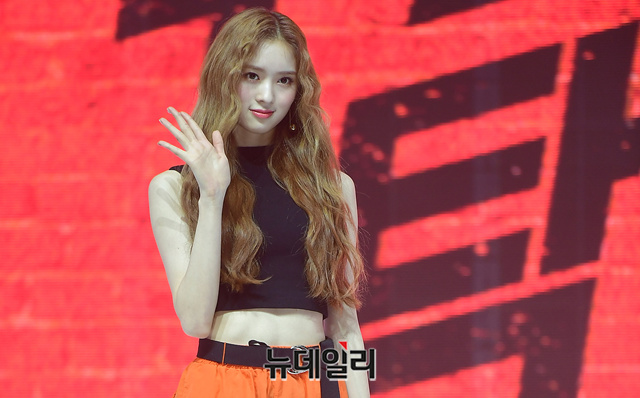 걸그룹 체리블렛 메이가 11일 오후 서울 광진구 예스24 라이브홀에서 열린 첫번째 디지털 싱글 '무릎을 탁 치고' 쇼케이스에서 포토타임을 갖고 있다.