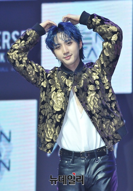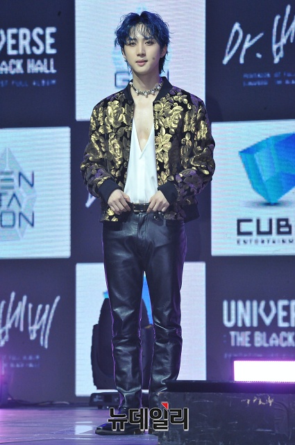 아이돌그룹 ‘펜타곤(PENTAGON)’ 리더 후이가 12일 오후 서울 광진구 예스24 라이브홀에서 열린 정규 1집 ‘유니버스 : 더 블랙 홀(UNIVERSE : THE BLACK HALL)’ 쇼케이스에서 포토타임을 갖고 있다.‘유니버스 : 더 블랙 홀’은 펜타곤의 데뷔 첫 정규앨범이다. 타이틀곡 ‘Dr. 베베’는 힙합리듬을 기반으로 한 일레트로닉 장르의 곡으로 펜타곤만의 강렬한 퍼포먼스를 보여줄 예정이다. 앨범은 11트랙으로 구성됐다. 오후 6시 공개.