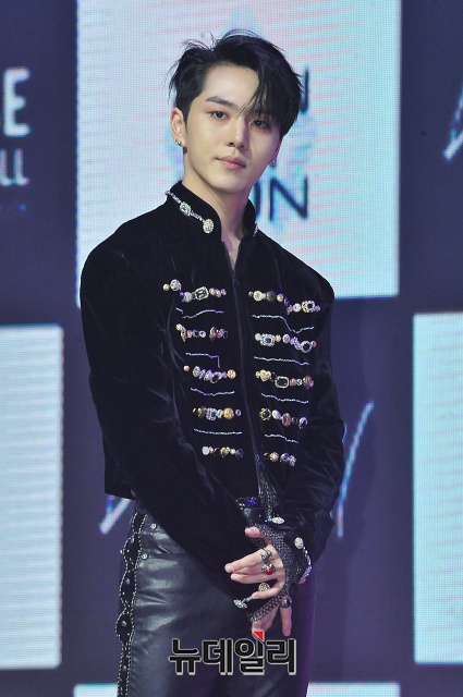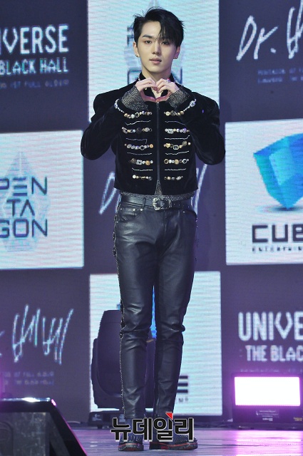 아이돌그룹 ‘펜타곤(PENTAGON)’ 멤버 키노가 12일 오후 서울 광진구 예스24 라이브홀에서 열린 정규 1집 ‘유니버스 : 더 블랙 홀(UNIVERSE : THE BLACK HALL)’ 쇼케이스에서 포토타임을 갖고 있다.‘유니버스 : 더 블랙 홀’은 펜타곤의 데뷔 첫 정규앨범이다. 타이틀곡 ‘Dr. 베베’는 힙합리듬을 기반으로 한 일레트로닉 장르의 곡으로 펜타곤만의 강렬한 퍼포먼스를 보여줄 예정이다. 앨범은 11트랙으로 구성됐다. 오후 6시 공개.