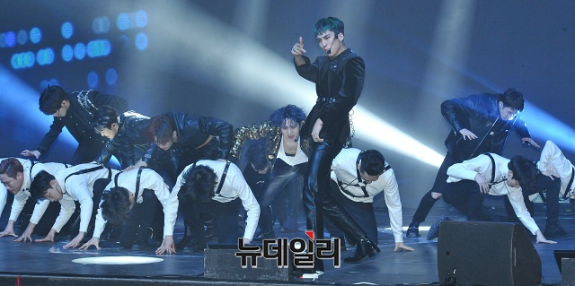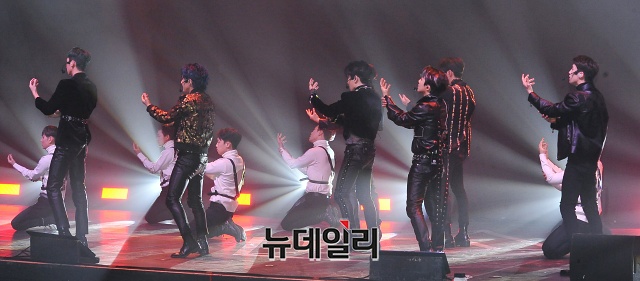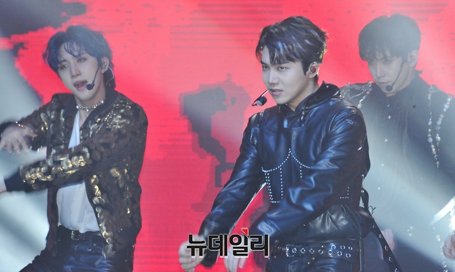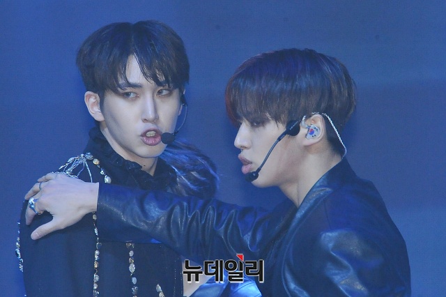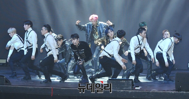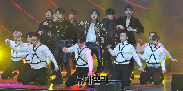 아이돌그룹 ‘펜타곤(PENTAGON)’이 12일 오후 서울 광진구 예스24 라이브홀에서 열린 정규 1집 ‘유니버스 : 더 블랙 홀(UNIVERSE : THE BLACK HALL)’ 쇼케이스에서 무대를 선보이고 있다.‘유니버스 : 더 블랙 홀’은 펜타곤의 데뷔 첫 정규앨범이다. 타이틀곡 ‘Dr. 베베’는 힙합리듬을 기반으로 한 일레트로닉 장르의 곡으로 펜타곤만의 강렬한 퍼포먼스를 보여줄 예정이다. 앨범은 11트랙으로 구성됐다. 오후 6시 공개.