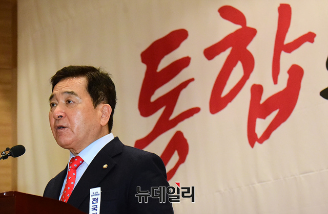 심재철 자유한국당 원내대표가 13일 오전 국회 의원회관에서 열린 한국당 전국위원회에 참석해 발언을 하고 있다.