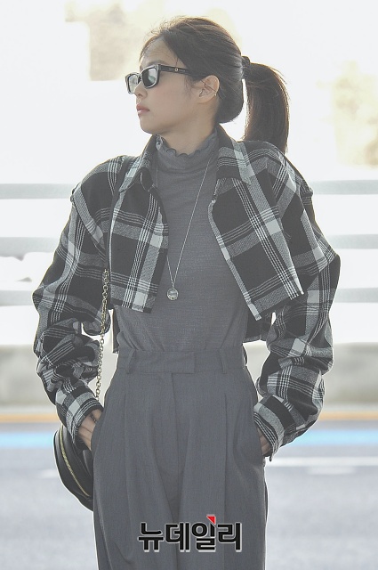 블랙핑크 제니가 13일 오전 영국 런던으로 출국하기 위해 인천국제공항 출국장으로 이동하고 있다.(인천=권창회 기자)
