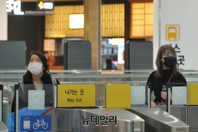 [포토] '코로나19' 예방, 마스크 쓴 인천공항 이용객들