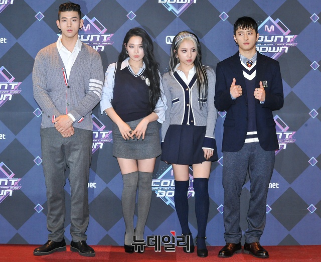 혼성그룹 KARD가 13일 오후 서울 마포구 CJ ENM 센터에서 열린 엠카운트다운에 앞서 포토타임을 갖고 있다.