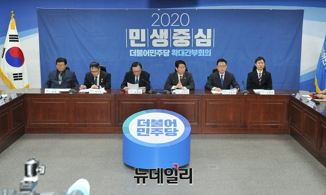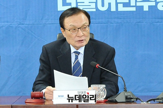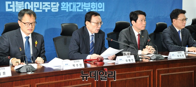 이해찬 더불어민주당 대표가 14일 오전 국회 의원회관에서 열린 확대간부회의에서 모두발언을 하고 있다.