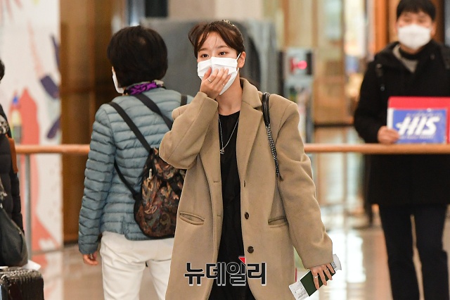 에이프릴 나은이 14일 오후 호주 멜버른 일정을 마치고 인천국제공항 입국장으로 입국하고 있다. (인천=권창회 기자)