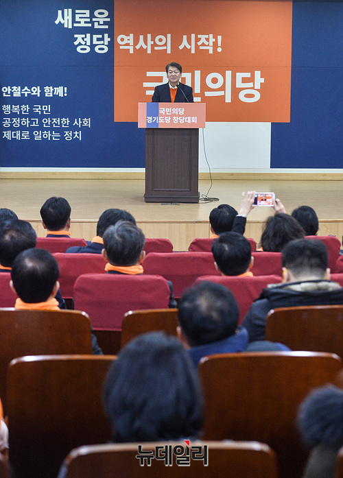 안철수 국민의당(가칭) 창당준비위원장이 16일 오전 국회 의원회관에서 열린 경기도당 창당대회에서 인사말을 하고 있다.