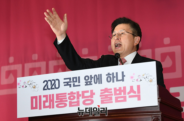 황교안 미래통합당 대표가 17일 오후 국회 의원회관에서 열린 미래통합당 출범식 '2020 국민 앞에 하나'에서 인사말을 하고 있다.