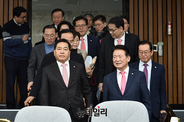[포토] 원내대책회의 입장하는 미래통합당 지도부