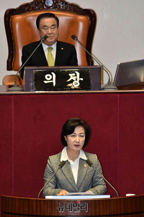 추미애 법무부장관이 18일 오전 국회 본회의장에서 열린 제376회 제1차 본회의에서 인사말을 하고 있다.