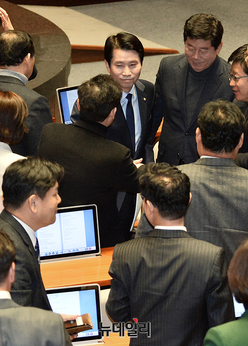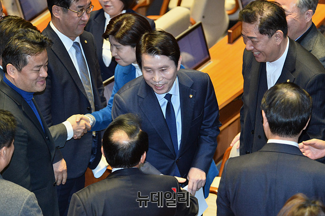 [포토] 교섭단체 연설 후 본회의장 나서는 이인영