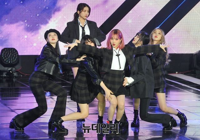 걸그룹 여자친구가 18일 오후 서울 마포구 SBS프리즘타워에서 열린 SBS MTV ‘더 쇼(THE SHOW)’ 생방송에서 무대를 선보이고 있다.