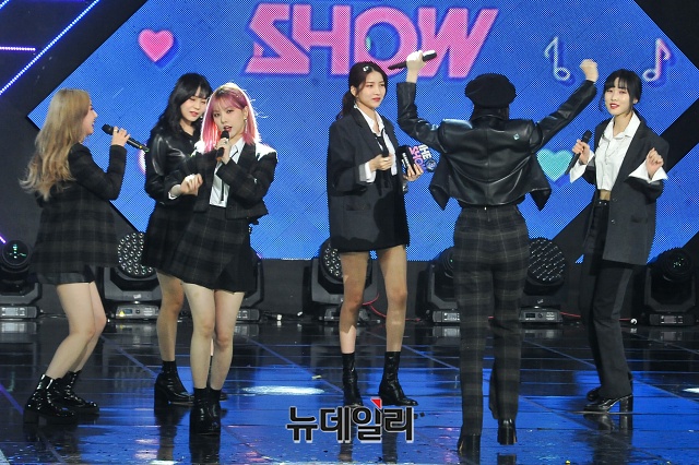 신곡 '교차로'로 1위를 차지한 걸그룹 '여자친구'가 18일 오후 서울 마포구 SBS 프리즘타워에서 열린 SBS MTV '더 쇼(THE SHOW)' 생방송에서 앵콜무대를 선보이고 있다.