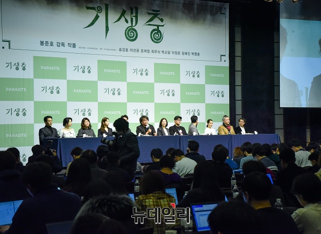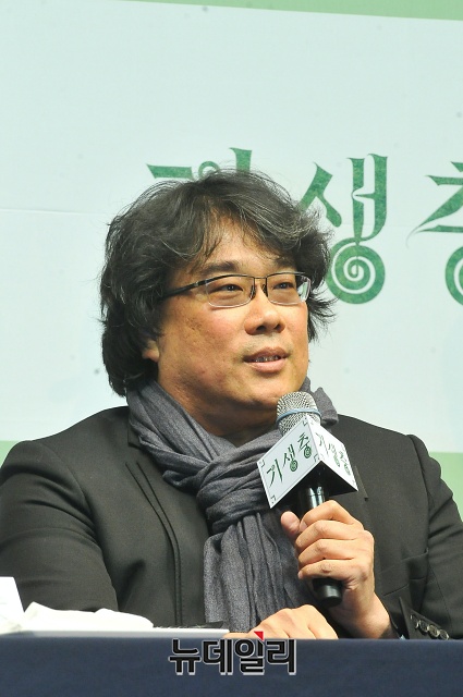 봉준호 감독이 19일 오전 서울 중구 웨스틴조선호텔에서 열린 영화 '기생충' 기자회견에서 취재진의 질문에 답하고 있다.