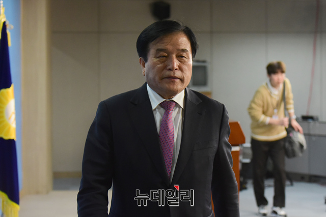 이진복 미래통합당 (부산 동래구) 의원이 19일 오전 국회 정론관에서 21대 총선 불출마 선언 기자회견을 마치고 회견장을 떠나고 있다.