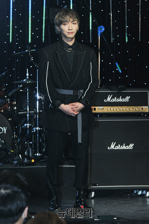 아이돌 밴드 '디코이(D.COY)' 메인보컬 성우가 19일 오후 서울 마포구 롤링홀에서 열린 데뷔 싱글 'COLOR MAGIC(컬러매직)' 쇼케이스에서 포토타임을 갖고 있다.