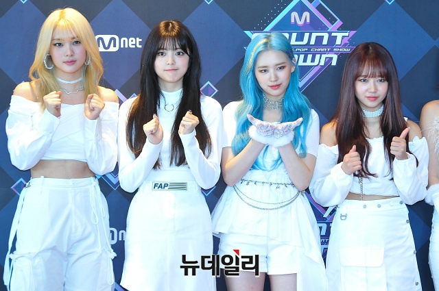 걸그룹 위키미키가 20일 오후 서울 마포구 CJ ENM 센터에서 열린 생방송 엠카운트다운에 앞서 포토타임을 갖고 있다.