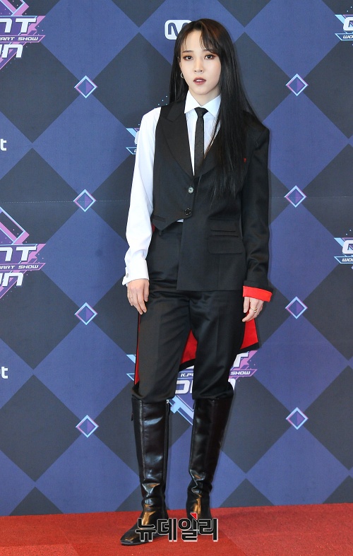 마마무 문별이 20일 오후 서울 마포구 CJ ENM 센터에서 열린 생방송 엠카운트다운에 앞서 포토타임을 갖고 있다.