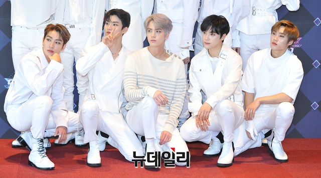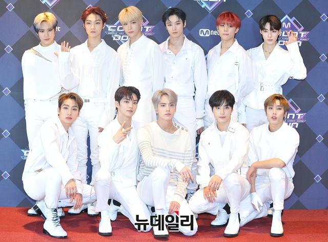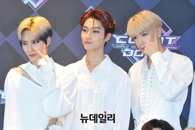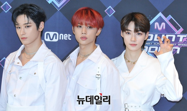 아이돌그룹 더보이즈가 20일 오후 서울 마포구 CJ ENM 센터에서 열린 생방송 엠카운트다운에 앞서 포토타임을 갖고 있다.