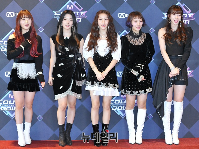 걸그룹 로켓펀치가 20일 오후 서울 마포구 CJ ENM 센터에서 열린 생방송 엠카운트다운에 앞서 포토타임을 갖고 있다.