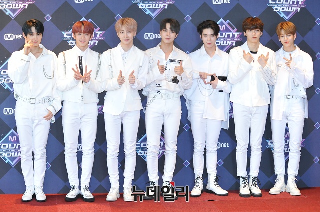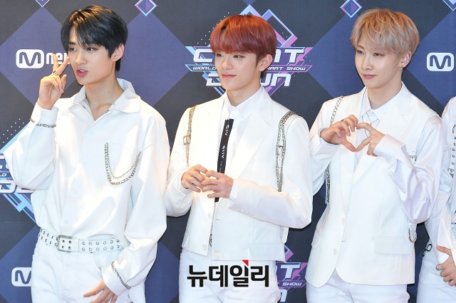 아이돌그룹 베리베리가 20일 오후 서울 마포구 CJ ENM 센터에서 열린 생방송 엠카운트다운에 앞서 포토타임을 갖고 있다.