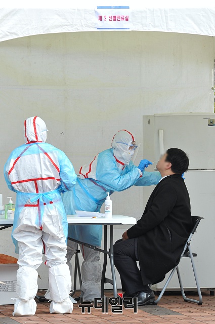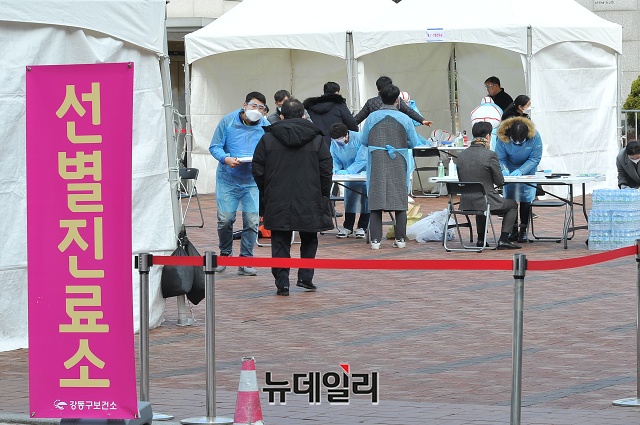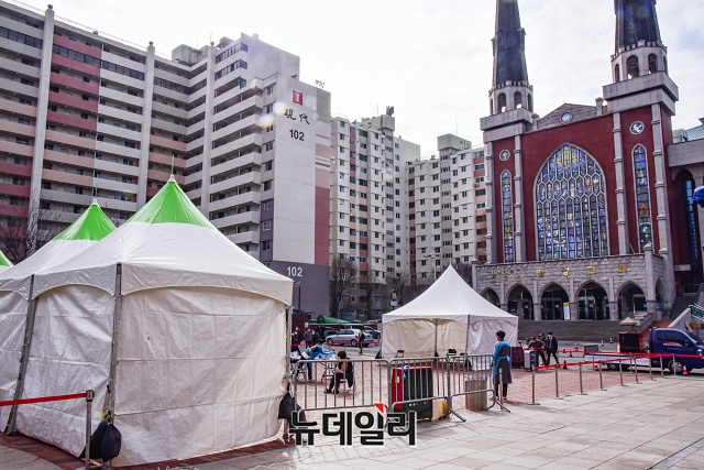 강동구는 확진자가 발생한 명성교회 앞에 임시 선별진료소를 설치해 지역감염 우려를 줄이겠다고 밝혔다.
