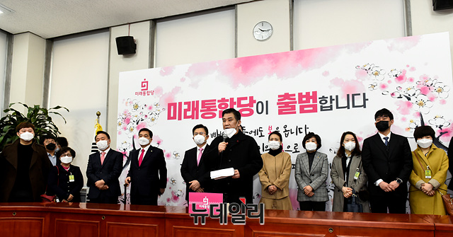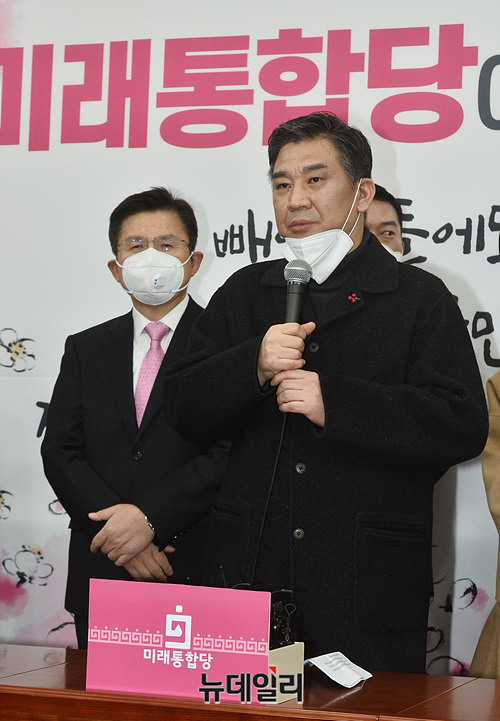 미래통합당 영입인재인 최승재 소상공인연합회장이 26일 오전 국회에서 열린 영입인사 환영식에서 인사말을 하고 있다.
