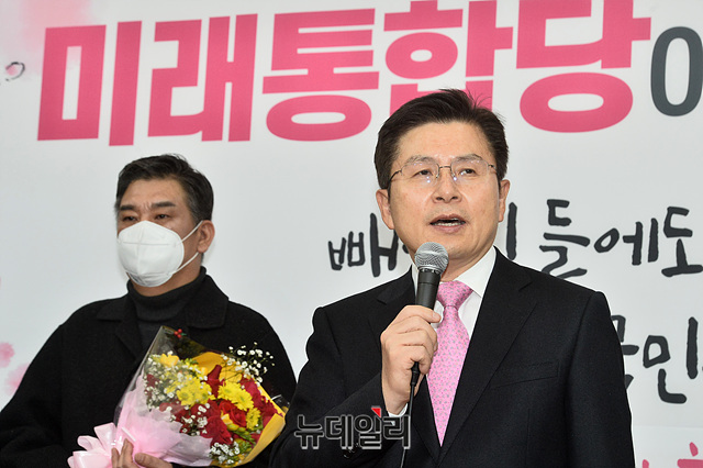 황교안 미래통합당 대표가 26일 오전 국회에서 열린 영입인사 환영식에서 인사말을 하고 있다.