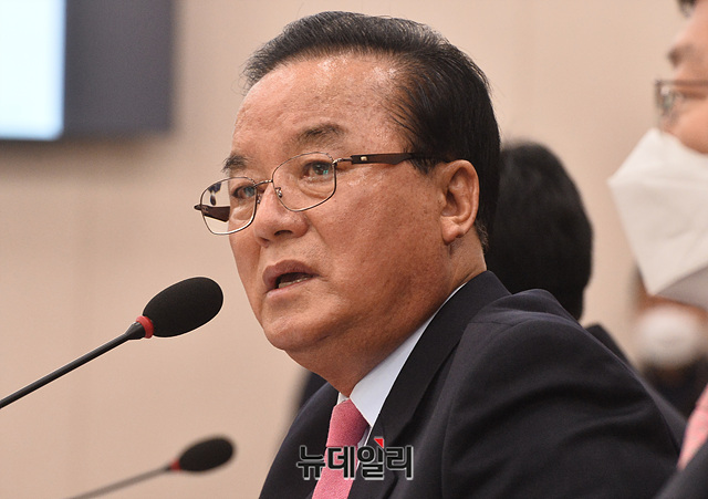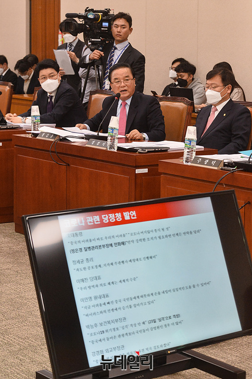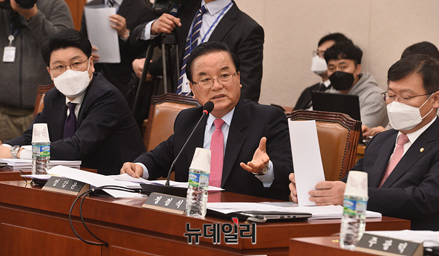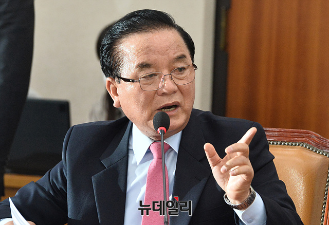 정갑윤 미래통합당 의원이 26일 오전 국회에서 열린 법제사법위원회 전체회의에서 박능후 보건복지부 장관에게 질의하고 있다.