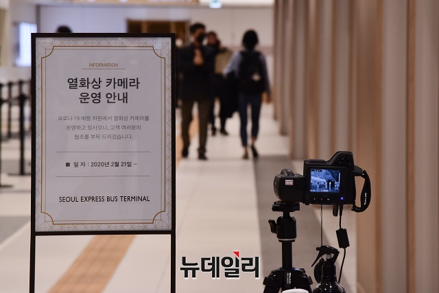 '코로나19(중국 우한 폐렴)' 확진자가 1,261명으로 늘어난 26일 오후 서울 서초구 고속버스터미널이 한산한 모습을 보이고 있다. 고속버스터미널은 21일부터 열화상 카메라를 곳곳에 배치해 '코로나19' 확산 방지에 힘쓰고 있다.