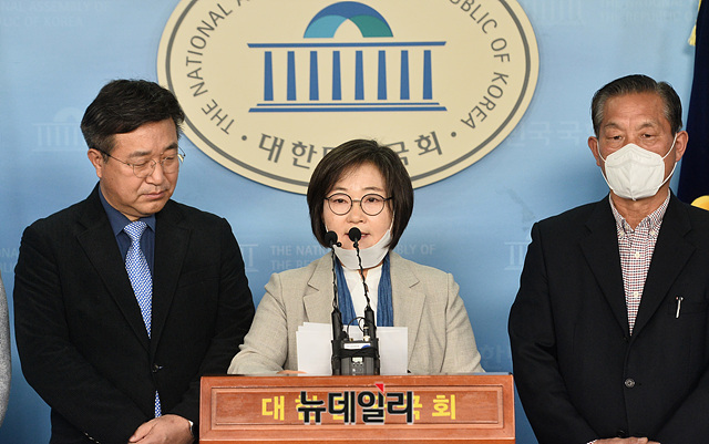 배옥병 전국먹거리연대 공동대표가 27일 오후 국회 정론관에서 더불어민주당 입당 기자회견을 갖고 있다.