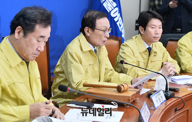 이해찬 더불어민주당 공동상임선대위원장이 28일 오전 국회에서 열린 제2차 선거대책위원회 회의에서 모두발언을 하고 있다.