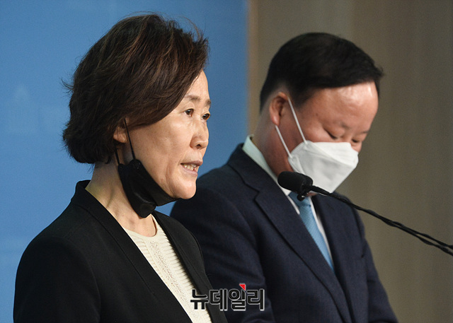 김재원 미래통합당 정책위의장과 미래통합당 영입인사인 윤주경 전 독립기념관장이 28일 오전 국회 정론관에서 2020 희망공약개발단 '보훈 공약' 발표 기자회견을 갖고 있다.김 정책위의장은 "국가를 위해 희생하신 분들에게 최고의 예우를 하는 것은 절대 지나치치 않으며, 이분들에게 제대로 된 예우를 해드리는 것이 진정한 보훈 정책"이라며 ▲전체 예산 대비 보훈예산비중을 1.1%대에서 단계적 확대 ▲합리적인 보훈 급여금 지급 시스템 마련 ▲각종 보훈 수당 현실화 ▲공적이전소득 대한 소득인정액 산정 방식 개선 ▲참전 명예수당 대폭 인상 ▲위탁병원 감면대상자 확대·약제비 지원 ▲위탁병원 확충 등을 발표했다.
