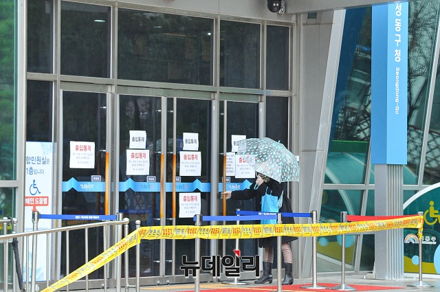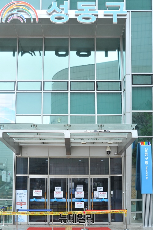 [포토] 성동구 직원 코로나19 확진, 구청 긴급폐쇄