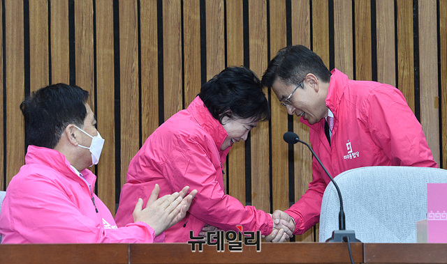 안철수계 김삼화·김수민·신용현 의원이 2일 오전 국회에서 열린 미래통합당 최고위원회의에 앞서 입당식을 갖고 황교안 통합당 대표와 심재철 원내대표와 기념촬영을 하고 있다.