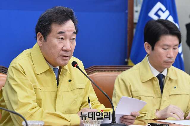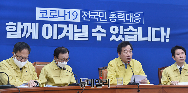 이낙연 더불어민주당 코로나19 재난안전대책위원장이 2일 오전 국회에서 열린 '코로나19재난안전대책위원회-최고위원회 연석회의'에서 모두발언을 하고 있다.