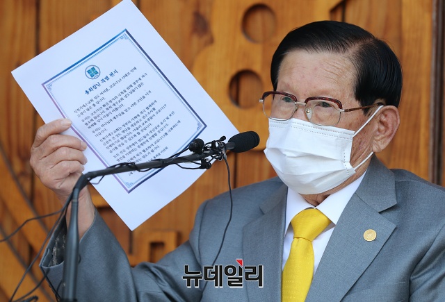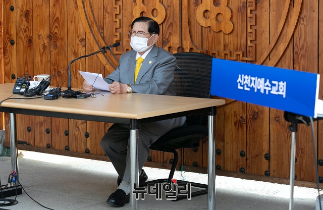 이 회장은 "코로나 감염 관리를 위해 정부 당국에서 최선의 노력을 하고 있고 우리도 협조하고 있다"며 "최선을 다해서 정부에 인적, 물적 지원을 아끼지 않겠다. 정부와 국민께 용서를 구한다"고 말했다.(경기 가평=권창회 기자)