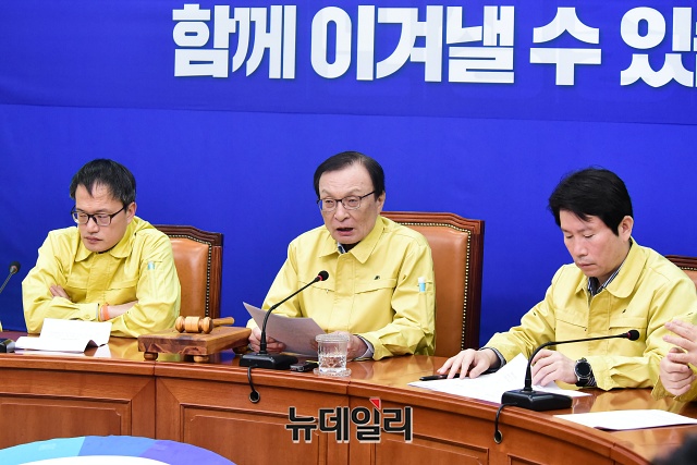 이해찬 더불어민주당 대표가 4일 오전 국회에서 열린 최고위원회의에서 모두발언을 하고 있다.