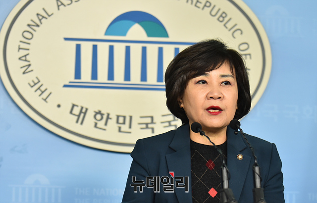 김순례 미래통합당 최고위원이 4일 오후 국회 정론관에서 기자회견을 열고 최고위원직 사퇴 의사를 밝히고 있다.