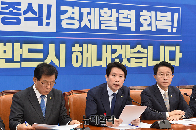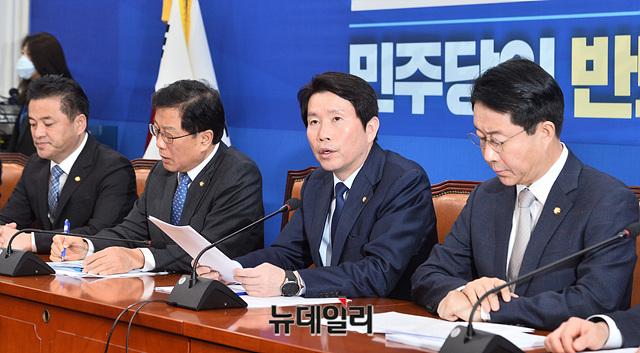 이인영 더불어민주당 원내대표가 5일 오전 국회에서 열린 정책조정회의에서 모두발언을 하고 있다.