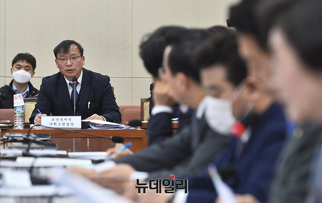 강도태 보건복지부 기획조정실장이 5일 오전 국회에서 열린 코로나19 대책 특별위원회에서 의원들의 질의에 답하고 있다.