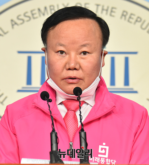김재원 미래통합당 '국민과 함께하는 2020 희망공약 개발단' 총괄단장이 5일 오전 국회 정론관에서 기자회견을 갖고 '벤처공약' 발표를 하고 있다.