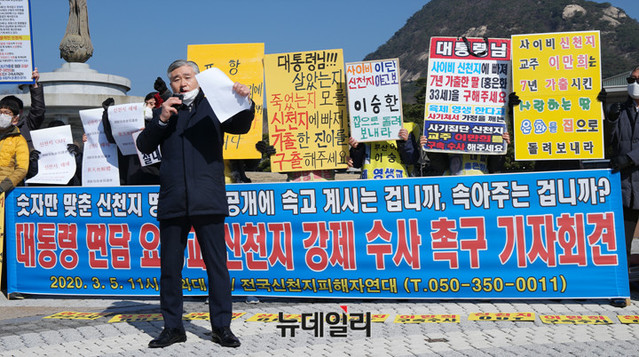 전국신천지피해자연대는 이만희 신천지 총회장과 고위 간부 2명을 특정경제범죄가중처벌법상 횡령 혐의로 추가 고발한다고 밝혔다. 이들은 청와대에 고발장을 접수하고 대통령 면담을 요청할 예정이다.