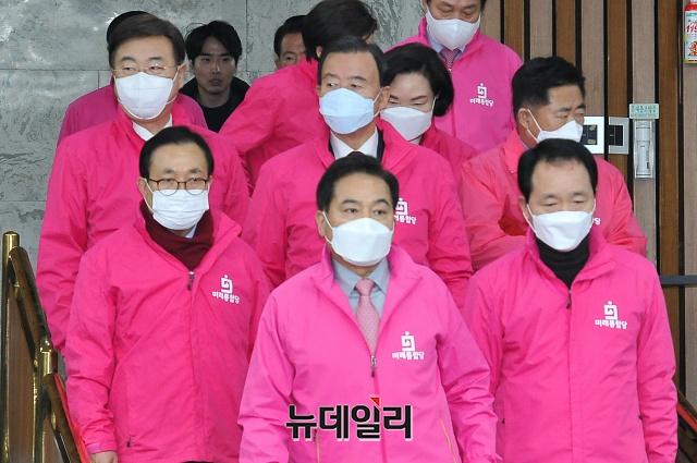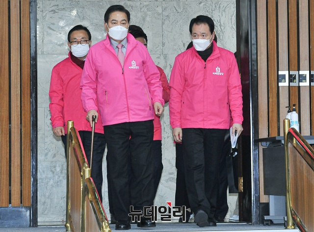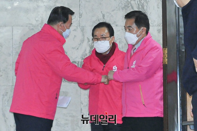[포토] 원내대책회의 입장하는 미래통합당 지도부